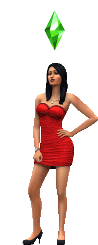 Bella Goth from The Sims confidently poses in a striking red dress, celebrating International Women's Day.
