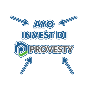 An animated sticker encouraging investment in Provesty, featuring a logo and arrows.