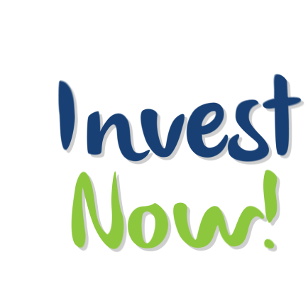 Animated sticker featuring the phrase 'Invest Now!' in blue and green, promoting investment and growth with Investree's slogan.