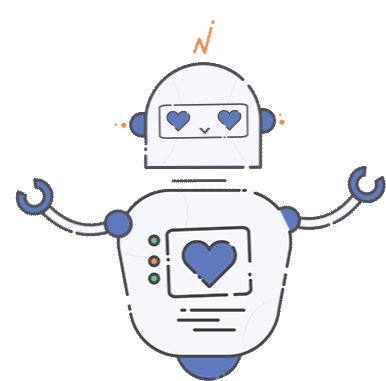 An Iranserver blue bot sticker featuring heart-shaped eyes and a prominent blue heart displayed on its chest.