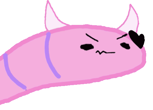 The popular VTuber Ironmouse depicted as a pink worm with horns and a heart eye, rapidly spinning in a fun animation.