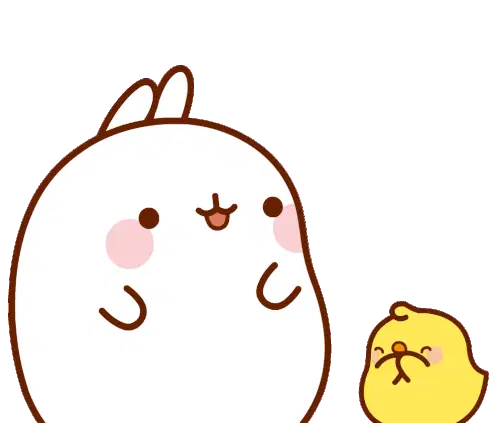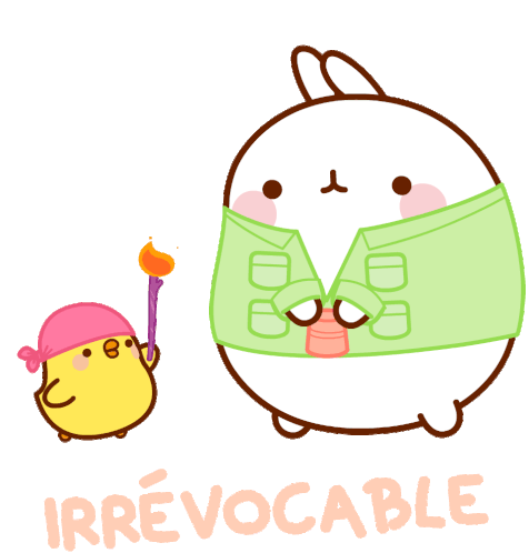 Molang and Piu Piu animated sticker with the word 'Irrévocable'. Piu Piu looks angry while Molang blushes.