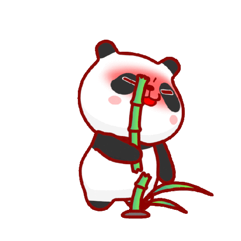An adorable panda character with red cheeks and angry eyes holds a bamboo stick, showing clear irritation with steam rising.