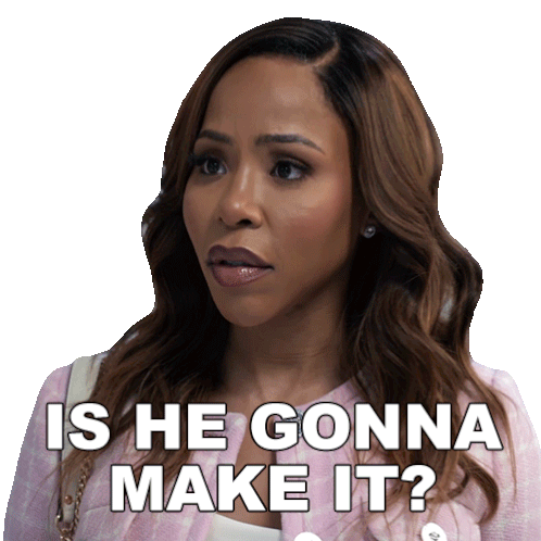 Andrea Barnes from Sistas asks "Is He Gonna Make It?" with a worried and concerned expression.
