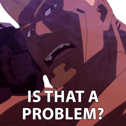 A character from Cyberpunk Edgerunners asks 'Is That A Problem?' with a serious and defiant expression.
