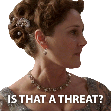 Ruth Gemmell as Lady Violet Bridgerton asks, "Is that a threat?" with a concerned expression.