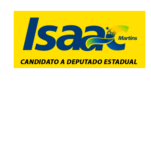 Isaac Martins, a candidate for State Deputy, is featured on a vibrant yellow campaign banner with a hand pointing to his name.