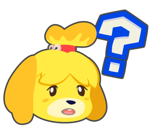 Isabelle from Animal Crossing New Horizons looking confused with a question mark above her head, perfect for asking questions.