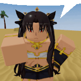 Ishtar, a girl in a bikini, stands in a desert with a speech bubble, showing a complaining expression.