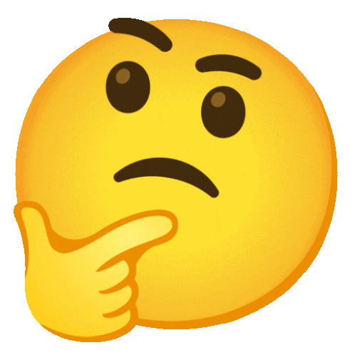 A classic yellow thinking face emoji with raised eyebrows and a hand on its chin, deep in thought.