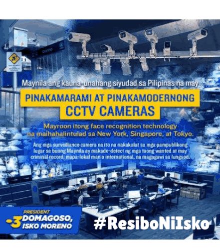 Isko Moreno's campaign highlights Manila as the first Philippine city with modern CCTV and face recognition technology for public safety.
