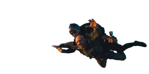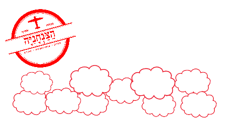 An animated stamp featuring an airplane, Hebrew text for "The Parachute Club" and skydiving terms, with clouds below.