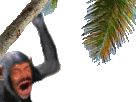 Issou Risitas holds a banana while a monkey hangs from a tree, referencing the 'Ne Pas Nourrir' meme.