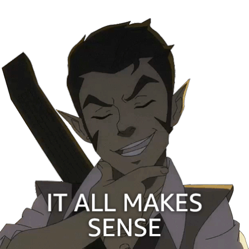 Scanlan Shorthalt from The Legend of Vox Machina smirks knowingly, declaring "It All Makes Sense."