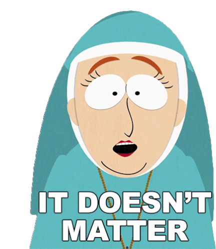 Sister Anne from South Park animatedly says 'It Doesn't Matter' with a changing expression.