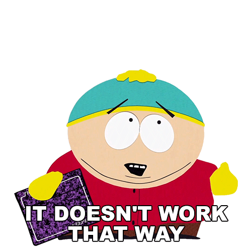 Eric Cartman from South Park holds a Trapper Keeper, emphatically stating, 'It doesn't work that way.'