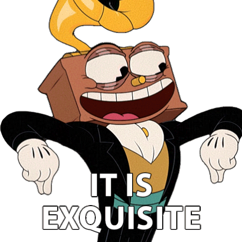 Ludwig from The Cuphead Show exclaims 'IT IS EXQUISITE' with a delighted expression, perfect for expressing approval.