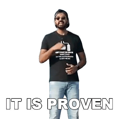 Faisal Khan, wearing a black shirt and cap, confidently states 'IT IS PROVEN' in this animated sticker.