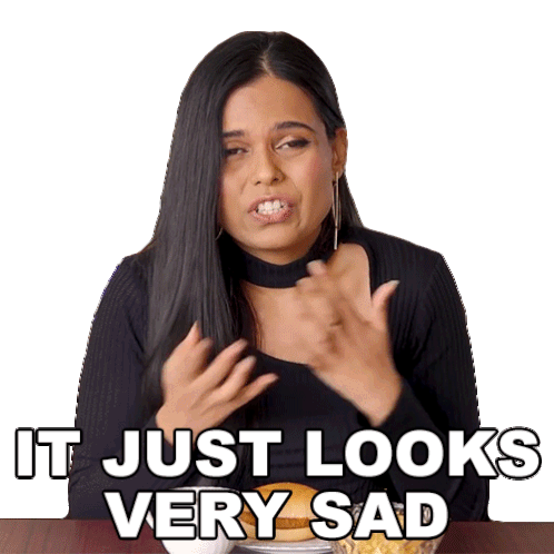 Aishwarya from Buzzfeed India expresses her disappointment, stating 'It just looks very sad' with a concerned expression.
