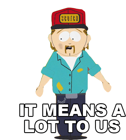 Stuart McCormick from South Park says 'It Means A Lot To Us' with a shrug, expressing importance.