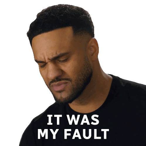 TJ, played by Anthony Grant, expresses regret and takes responsibility, saying "IT WAS MY FAULT" with a pained expression.