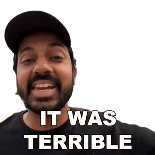 Faisal Khan, wearing a cap, reacts with an "It Was Terrible" expression, showing disappointment and then a slight smile.