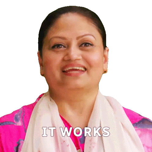 Elora from The Great Canadian Baking Show smiles brightly as the text 'IT WORKS YES' appears, expressing success.