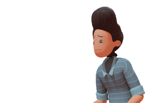 An ITBM cartoon character with a tall bun looks up with open hands, expressing sadness, pleading, or contemplation.