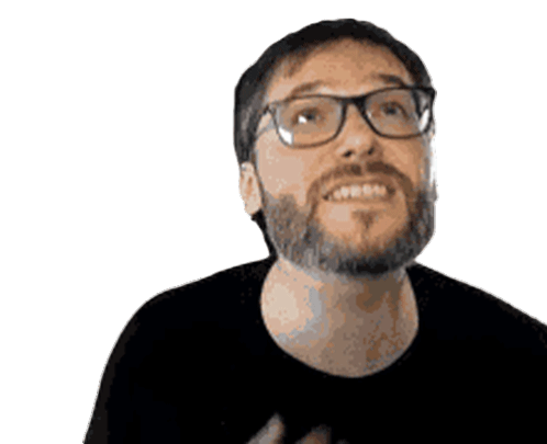 George Vanous, a man with a beard and glasses, scratches his neck and then looks at the camera with a smile.