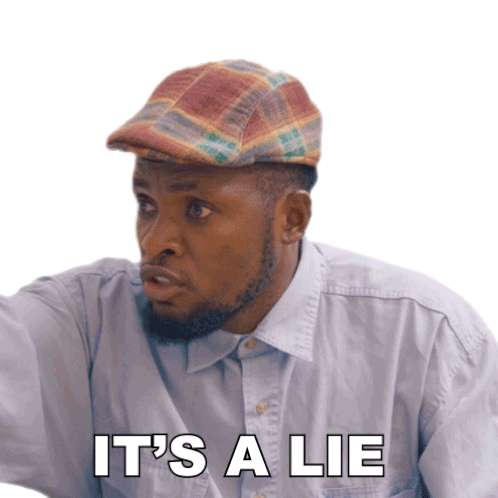 Mark Angel, wearing a plaid hat, emphatically declares 'It's A Lie,' expressing strong denial or disbelief.