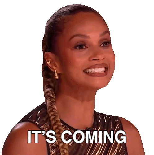 Alesha Dixon, a judge from Britain's Got Talent, smiles brightly as the caption 'IT'S COMING' appears on screen.