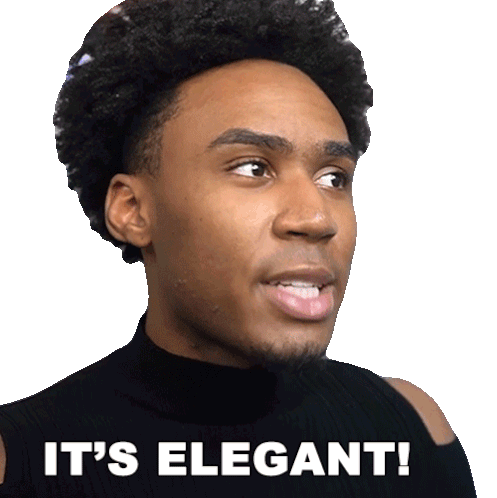 Rumi Robinson, with a thoughtful expression, reacts with the caption 'IT'S ELEGANT!', conveying appreciation for something stylish or classy.