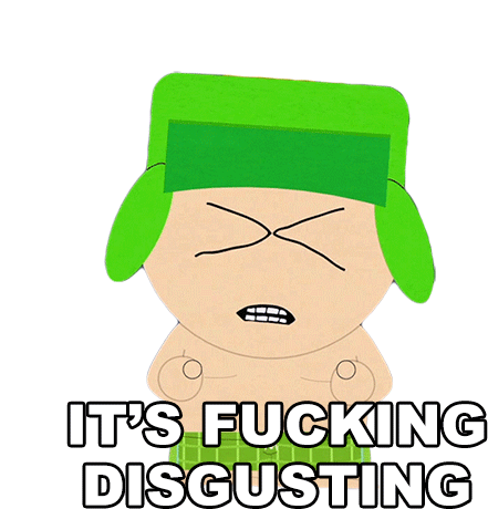 Kyle Broflovski from South Park expresses extreme disgust with the phrase 'It's Fucking Disgusting' in this animated sticker.