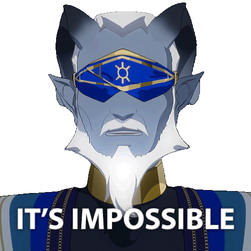 Aaravos from The Dragon Prince, wearing his signature blue visor, states 'IT'S IMPOSSIBLE' with a serious expression.