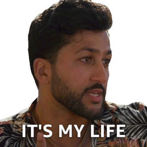A man assertively declares 'It's My Life' with a determined expression, emphasizing personal choice and independence.