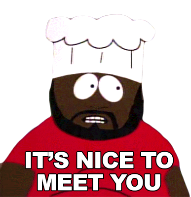 Jerome Mcelroy as Chef from South Park says 'It's Nice To Meet You' in this animated sticker.