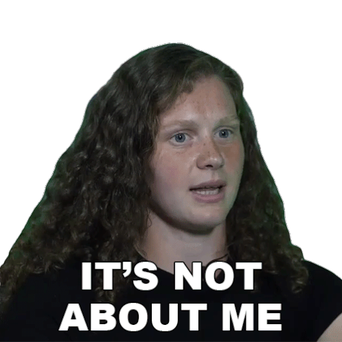 Caragh Hamilton, with long curly hair, looks away while stating "It's not about me," emphasizing humility or shifting focus.