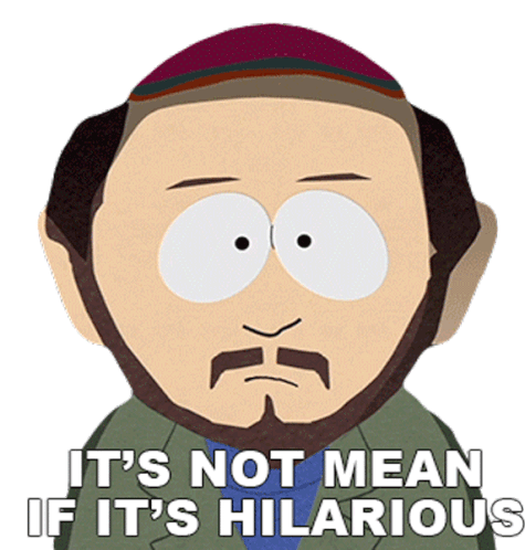 Gerald Broflovski from South Park states, "It's not mean if it's hilarious," with a changing expression.