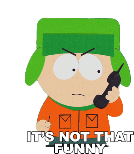 Kyle Broflovski from South Park, looking annoyed while holding a phone, with the caption "It's Not That Funny."
