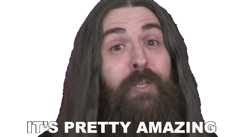 Samus Paulicelli, a man with long hair and a beard, expresses his awe by saying 'It's Pretty Amazing' with enthusiasm.