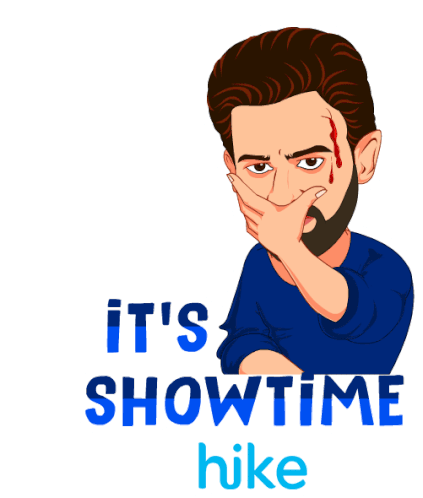 An intense animated sticker featuring a determined man with a battle scar, ready for action with 'It's Showtime!'