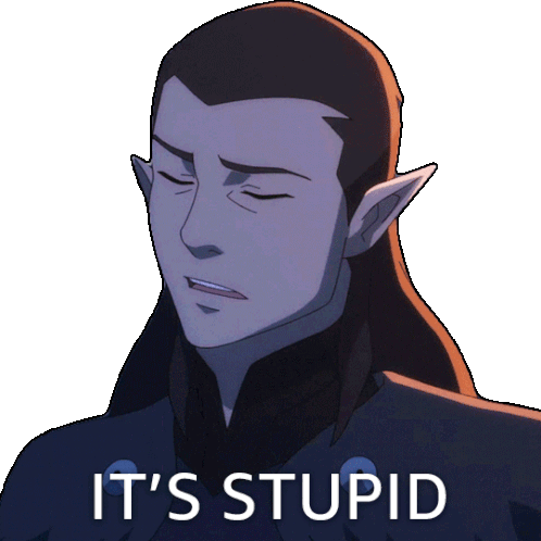 Vaxildan from The Legend of Vox Machina expresses disbelief with the caption 'It's Stupid'.