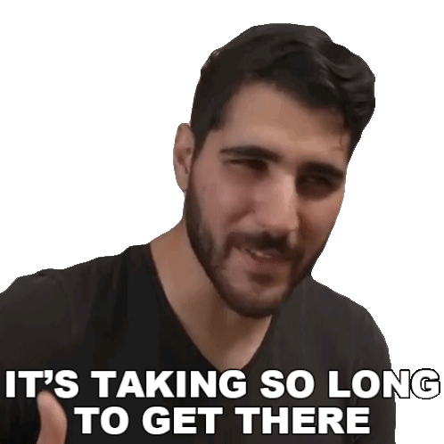 Rudy Ayoub expresses frustration with the text "IT'S TAKING SO LONG TO GET THERE," conveying impatience.