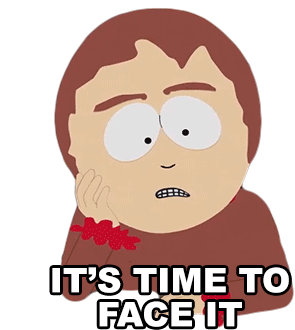 Sharon Marsh from South Park says 'It's Time To Face It', expressing a need to accept reality.