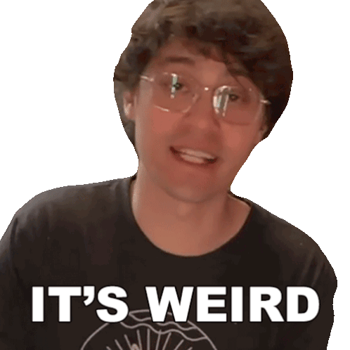 Agufish, a man wearing glasses, looks at the camera with 'IT'S WEIRD' written on his black t-shirt.