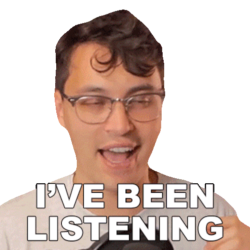 Hunter Engel speaks directly to the camera, with the caption 'I'VE BEEN LISTENING TO THEM FOR A WHILE' appearing, indicating prolonged engagement.