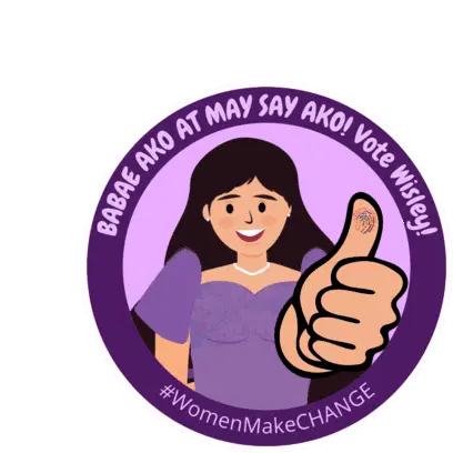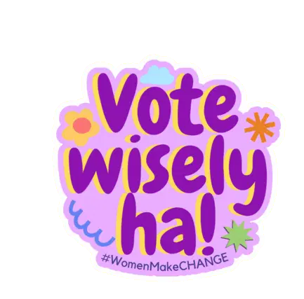 An animated sticker featuring a woman giving a thumbs-up, encouraging voting with the message 'I am a woman and I have a say! Vote Wisley!' and '#WomenMakeCHANGE'.