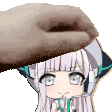 Izumo Saki from D4DJ receives a playful head pat with a donut, a cute and funny animated moment.