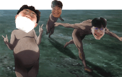 J Jing J Jingmin Titan and other titans standing in water, one wearing a mask.