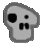 A pixel art Jacko Skull with black eyes and teeth on a white background, perfect for Halloween or spooky themes.